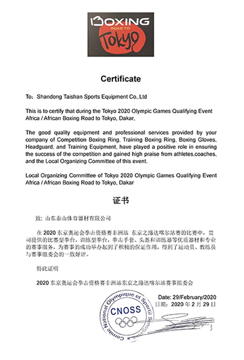 2020年东京奥运会拳击资格赛非洲站证书